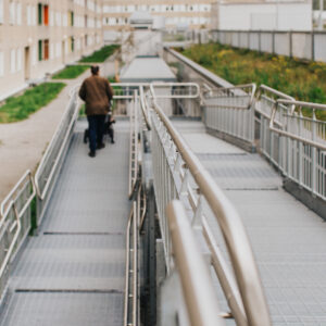 According to the building standards, there must be an entrance without stairs providing access to public spaces. Weland offers a wide range of stable, safe and easily assembled wheelchair ramps.