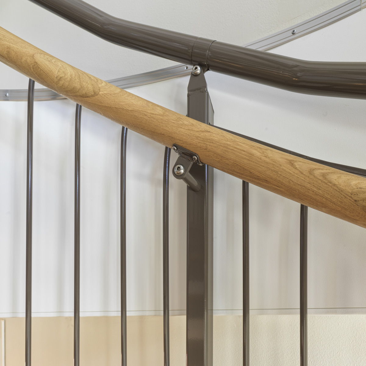 För att öka tillgängligheten och säkerheten i trappan kan våra spiraltrappor utrustas med flertalet tillval såsom extra handledare, innerhandledare, kontrastmarkering och valvräcke. En skyddsbur är mycket användbar när du behöver en intrångsskyddad trappa. Du kan även montera en låsbar grind vid trappans början eller slut. Weland hjälper dig gärna att hitta rätt tillbehör för spiraltrappor.
