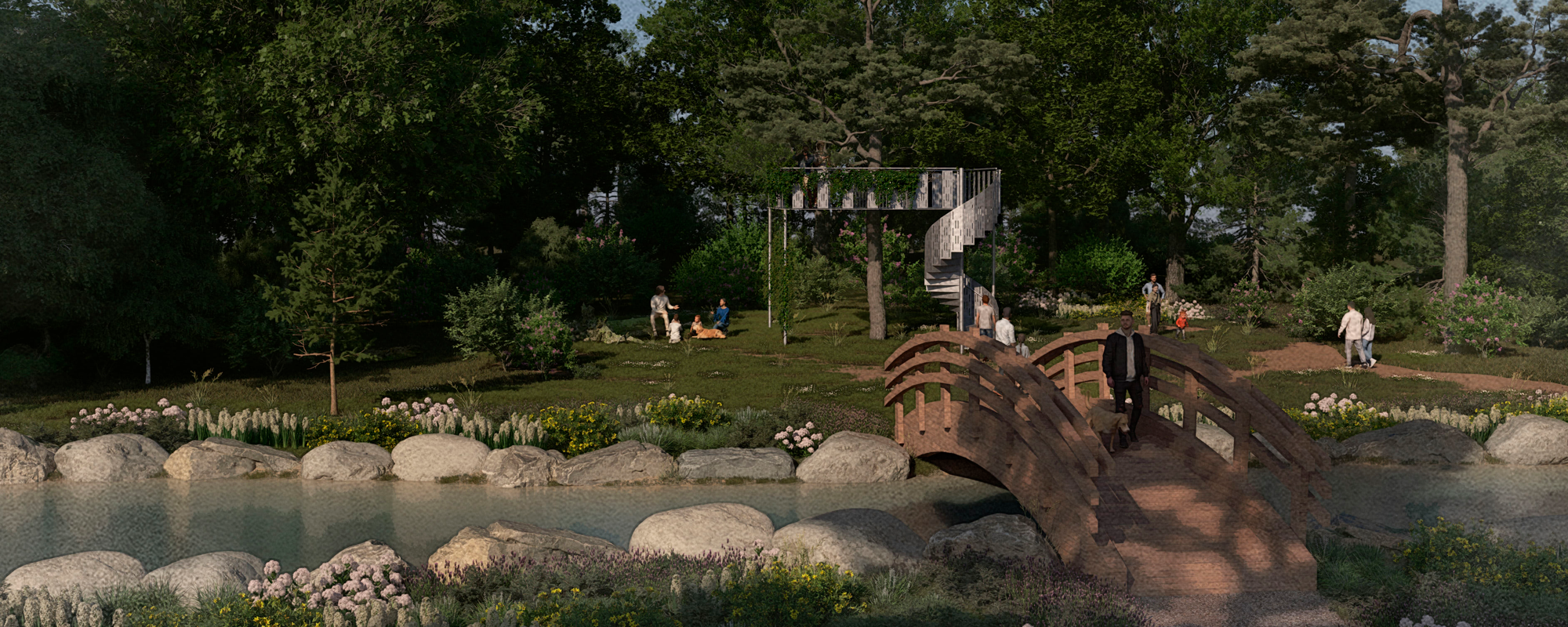 Wanda, 23 år, studerar till landskapsarkitekt vid Sveriges lantbruksuniversitet (SLU). Hon har placerat spiraltrappan JOS i en skogsmiljö där trappan leder upp till en plattform under ett stort träd. Här möts natur och arkitektur i en gestaltning som bjuder på nya perspektiv: vyer över en damm omgiven av grönska, en bro som leder besökaren vidare och en miljö som kombinerar stillhet med upptäckarlust.